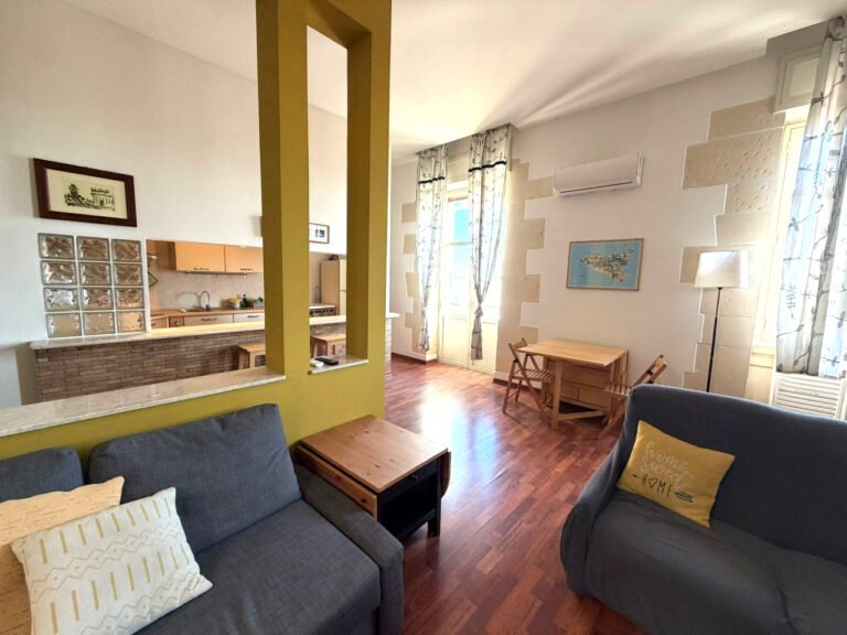 L’appartamento è caratterizzato da ambienti molto luminosi grazie alle grandi finestre e ai balconi che affacciano sia sulla via principale che sul meraviglioso panorama marittimo del Porto Grande. La zona giorno offre un living open-space moderno e accogliente, arricchito da dettagli architettonici originali come le pareti colorate e la pavimentazione effetto parquet. Il soggiorno offre spazi generosi per il relax ed è climatizzato per garantire massimo comfort tutto l’anno; la zona notte comprende Camera matrimoniale con cabina armadio, Seconda Camera, Bagno e Lavanderia.
