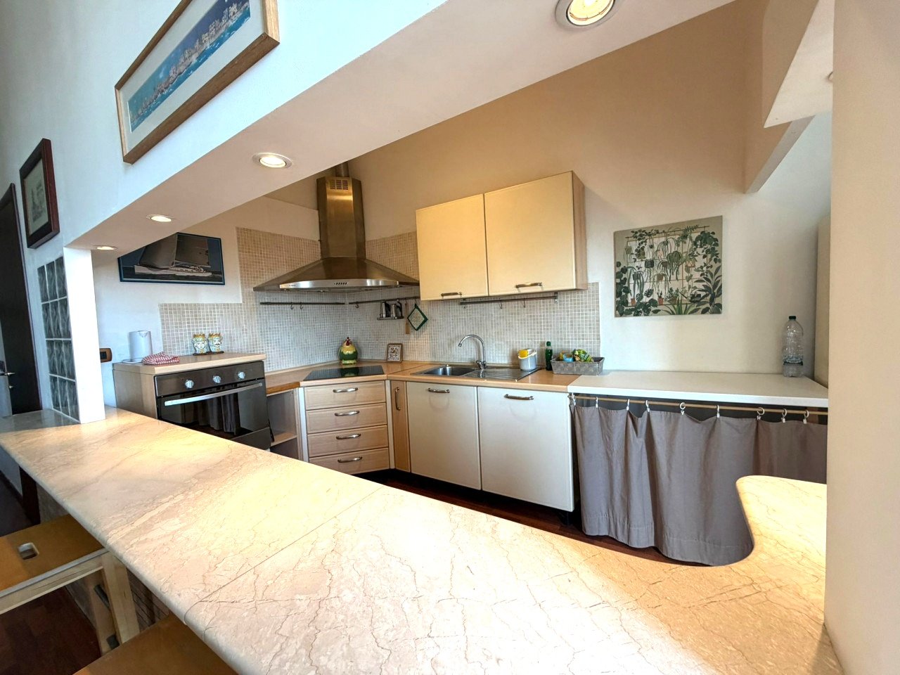 La presenza dei doppi balconi permette non solo una piacevole vista urbana ma anche scorci spettacolari sul mare dove poter godere momenti di tranquillità osservando le barche ormeggiate al largo. Gli infissi moderni assicurano isolamento termico ed acustico; inoltre le spese condominiali ridotte, rendendo questa soluzione ideale anche come investimento.