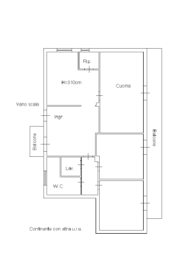 L’appartamento è composto da Ingresso, Ampio Soggiorno, Comoda Cucina-Soggiorno con camino, Due Camere Matrimoniali, Due Bagni e Lavanderia.